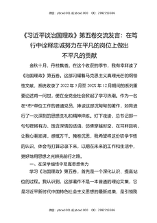 《习近平谈治国理政》第五卷交流发言:在笃行中诠释忠诚努力在平凡的岗位上做出不平凡的贡献.docx