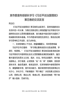 某市委宣传部部长学习《谈治国理政》第五卷的交流发言.docx