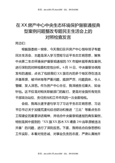 在XX房产中心中央生态环境保护督察通报典型案例问题整改专题民主生活会上的对照检查发言.docx