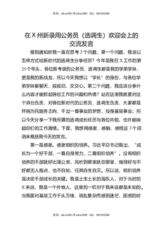 在X州新录用公务员(选调生)欢迎会上的交流发言.docx