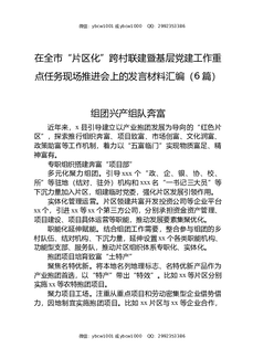 在全市“片区化”跨村联建暨基层党建工作重点任务现场推进会上的发言材料汇编(6篇).docx