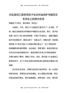 在街道党工委领导班子生态环境保护专题民主生活会上的表态发言.docx