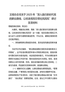 文明办主任关于2025年“深入践行新时代党的群众路线、以优良党风引领社风民风”研讨发言材料.docx