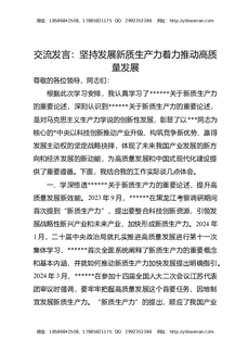 交流发言:坚持发展新质生产力着力推动高质量发展.docx