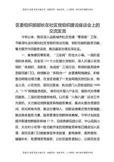 区委组织部部长在社区党组织建设座谈会上的交流发言.docx