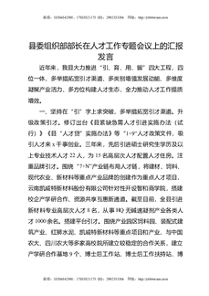 县委组织部部长在人才工作专题会议上的汇报发言.docx