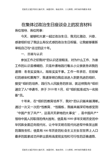 在集体过政治生日座谈会上的发言材料.docx