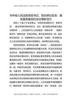 市中级人民法院党组书记、院长研讨发言:激发服务基层社会治理新活力.docx
