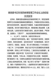 镇党委书记在党员教育管理工作会议上的经验交流发言.docx