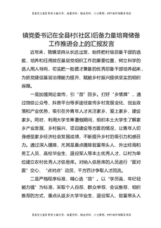 镇党委书记在全县村(社区)后备力量培育储备工作推进会上的汇报发言.docx