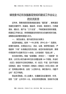 镇党委书记在加强基层党组织建设工作会议上的交流发言.docx