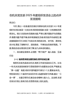 在机关党支部2025年度组织生活会上的点评发言提纲.docx