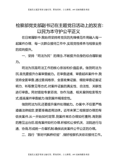 检察部党支部副书记在主题党日活动上的发言:以民为本守护公平正义.docx