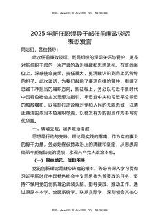 2025年新任职领导干部任前廉政谈话表态发言.docx