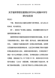 关于强军思想主题理论学习中心组集中学习研讨会发言.docx