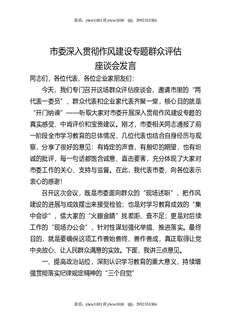 市委深入贯彻作风建设专题群众评估座谈会发言.docx