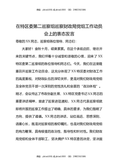 在特区委第二巡察组巡察财政局党组工作动员会上的表态发言.docx