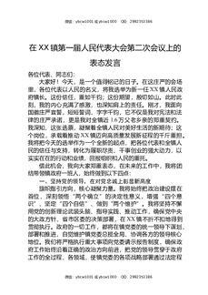 在XX镇第一届人民代表大会第二次会议上的表态发言.docx