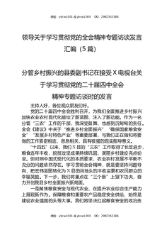 领导关于学习贯彻党的全会精神专题访谈发言汇编(5篇).docx