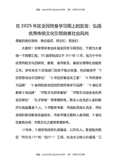 2025年区全民终身学习周上的发言:弘扬优秀传统文化,引领良善社会风尚.docx