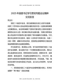 2025年县委书记学习贯彻专题会议精神交流发言.docx