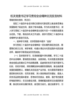 机关党委书记学习贯彻全会精神交流发言材料.docx