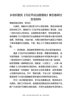 乡组织委员《习近平谈治国理政》第五卷研讨发言材料.docx