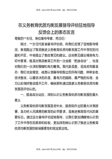 在义务教育优质均衡发展督导评估驻地指导反馈会上的表态发言.docx