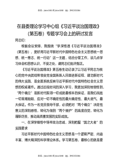 在县委理论学习中心组《治国理政》(第五卷)专题学习会上的研讨发言.docx