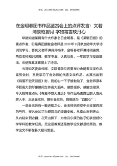 在金明春图书作品鉴赏会上的点评发言:文若清泉昭碧月字如霜雪映丹心.docx