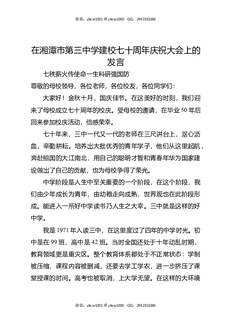 校友在XX市第三中学建校七十周年庆祝大会上的发言.docx