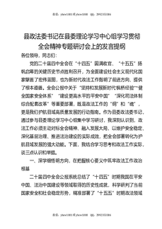 (四中)县政法委书记在县委理论学习中心组学习贯彻全会精神专题研讨会上的发言提纲.docx