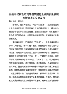县委书记在全市党建引领国有企业高质量发展座谈会上的交流发言.doc