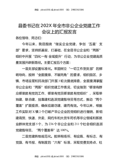 县委书记在202X年全市非公企业党建工作会议上的汇报发言.docx