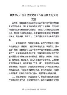 县委书记在国有企业党建工作座谈会上的交流发言.docx