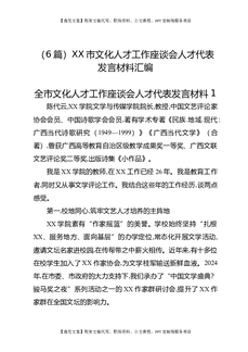 (6篇)XX市文化人才工作座谈会人才代表发言材料汇编.docx