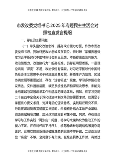 市发改委党组书记2025年专题民主生活会对照检查发言提纲.docx