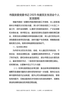 市国资委党委书记2025年度民主生活会个人发言提纲.docx