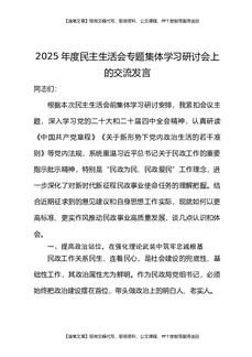 2025年度民主生活会专题集体学习研讨会上的交流发言.docx