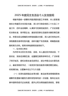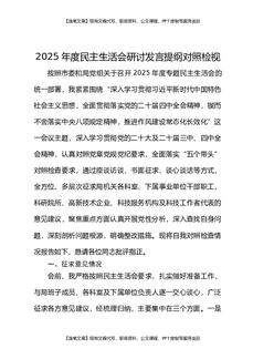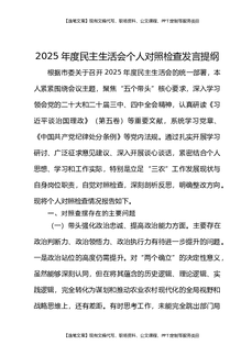 2025年度民主生活会研讨发言提纲对照检视.docx