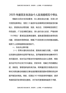 2025年度民主生活会个人对照检视发言材料五个带头.docx