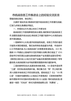 市统战信息工作推进会上的经验交流发言.docx