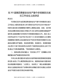 在XX县第四季度安全生产暨今冬明春防灾减灾工作会议上的讲话.docx