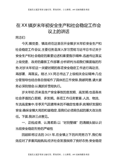 在XX镇岁末年初安全生产和社会稳定工作会议上的讲话.docx