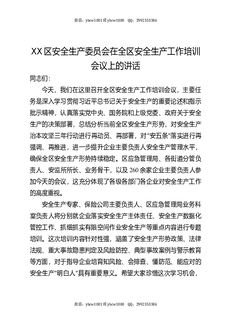 XX区安全生产委员会在全区安全生产工作培训会议上的讲话.docx