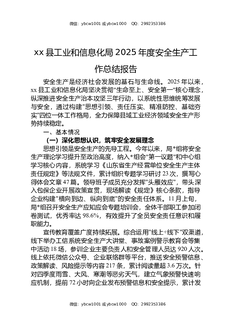 XX县工业和信息化局2025年度安全生产工作总结报告.docx