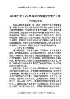 XX单位关于2025年第四季度安全生产工作的总结报告.docx