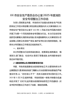 XX市安全生产委员会办公室2025年度消防安全专项整治工作总结.docx