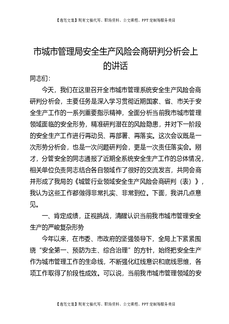 市城市管理局安全生产风险会商研判分析会上的讲话.docx