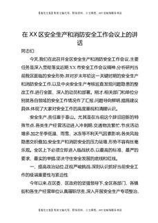 在XX区安全生产和消防安全工作会议上的讲话.docx